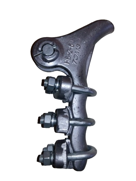 Предназначен для крепления алюминиевых, сталеалюминиевых и защищенных проводов СИП-3 к натяжным изолирующим подвескам анкерных, анкерно-угловых и концевых опор. Имеет корпус и прижимнуые плашки из алюминиевого сплава, что исключает потери от перемагничивания. Кроме того, данная конструкция не требует применения алюминиевой прокладки, предназначенной для исключения повреждения алюминиевого повива проводов стальными корпусами зажимов НБ-2-6. Требует снятия изоляции с проводов в месте установки зажимов.