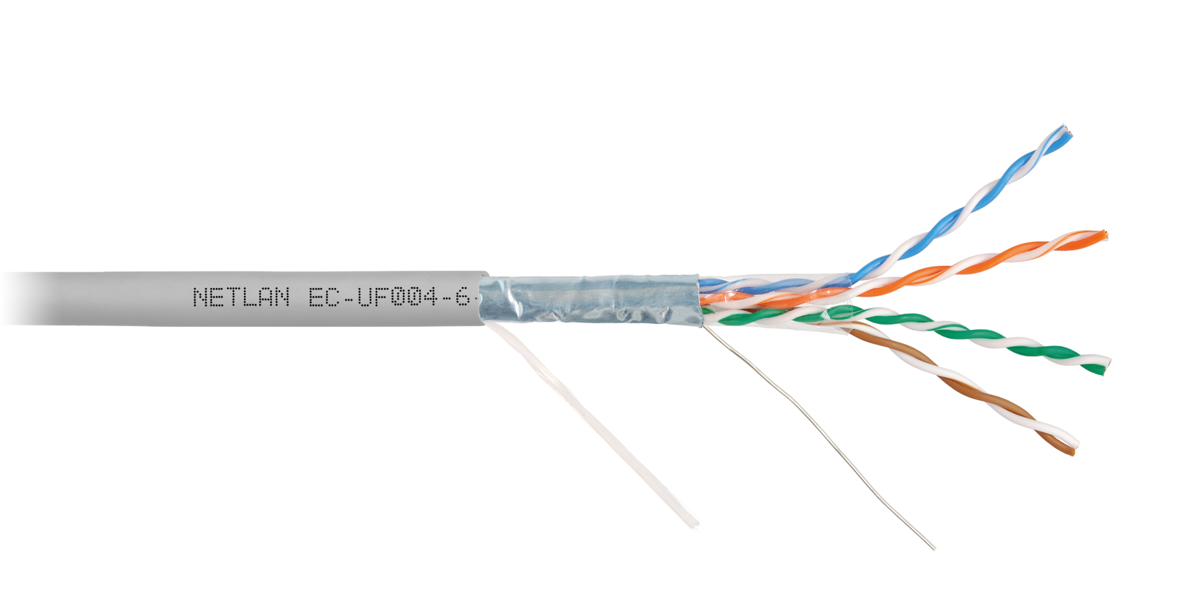 Содержит 4 пары витых медных проводников, выполнен в экранированном исполнении, соответствует категории 6. Применяется для организации высокоскоростных кабельных сегментов со скоростью передачи данных до 10 Гбит/c. Также может быть использован для передачи аналоговой информации. Поставляется в картонных коробках по 305 м. Для удобства транспортировки и лучшей сохранности две коробки с кабелем дополнительно объединены в одну общую транспортную картонную коробку.