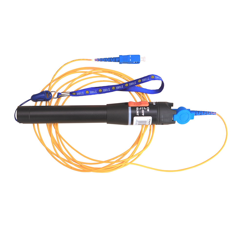 Позволяет обнаруживать обрывы или перегибы волокна, дефектные соединения, сварочные стыки и другие причины потерь сигнала в радиусе до 15 км. Представляет собой лазер, излучающий видимый свет на длине волны 650 нм. Прибор может излучать постоянный свет или пульсирующий с частотой 1 Гц или 2 Гц. В тех местах, где происходят потери сигнала, возникает ярко-красное пульсирующее свечение, хорошо заметное невооруженным глазом сквозь желтую оболочку многомодовых и одномодовых волокон. Прибор снабжен универсальным (2,5 мм) коннектором для подключения к волокну, питается от двух стандартных АА батареек, которых хватает на 12 часов непрерывной работы.